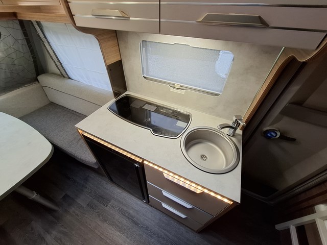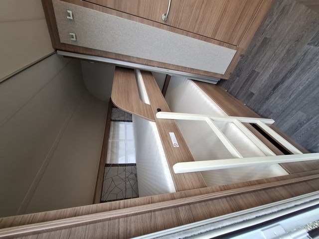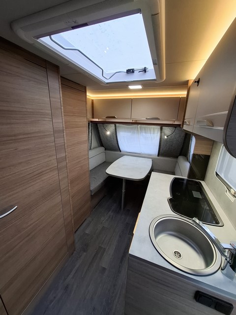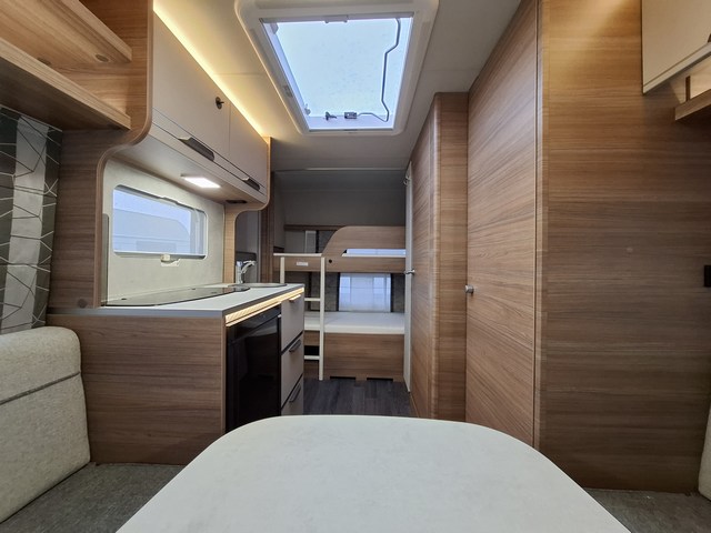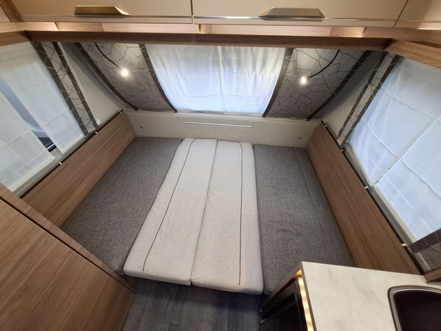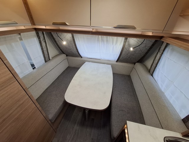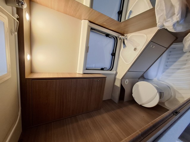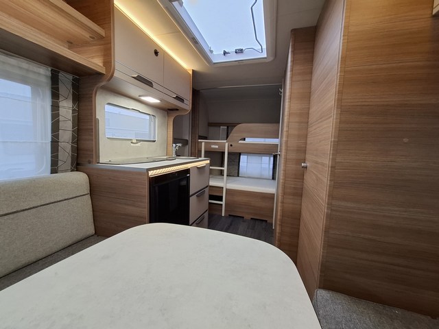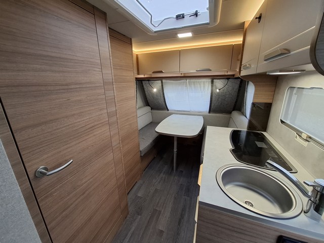 Telaio AL-KO, Stabilizzatore AL-KO, Piedini di stazionamento rinforzati, Impianto frenante Premium Brake autoregistrante, Indicatore di massa sul ruotino, Carter copritimone, Cerchi in lega da 14", Sportello di servizio esterno dx, Luce esterna a led, Zanzariera scorrevole all'ingresso, Maxi oblò centrale, Cucina con n°3 fuochi, Frigorifero trivalente 98lt., Riscaldamento Truma Vario Heat, Boiler Truma Therme 220V, Serbatoio H2O 45lt. Doccia con tendina, Toilette a cassetta estraibile, Finestra in bagno.