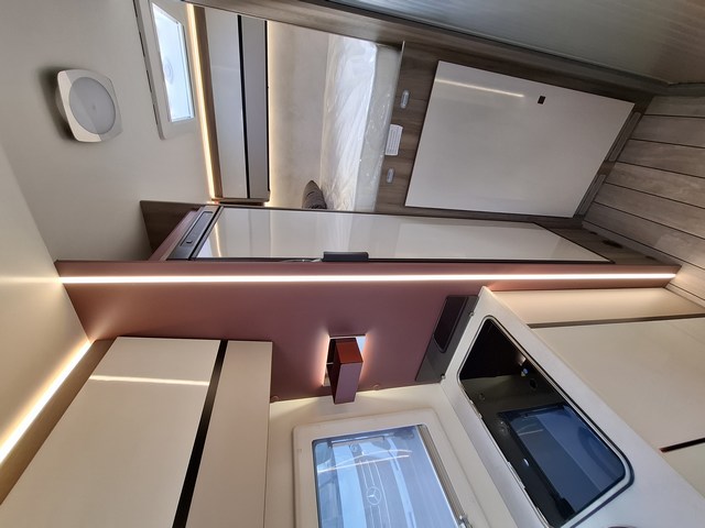 • Letto posteriore matrimoniale trasversale con faretti di lettura orientabili