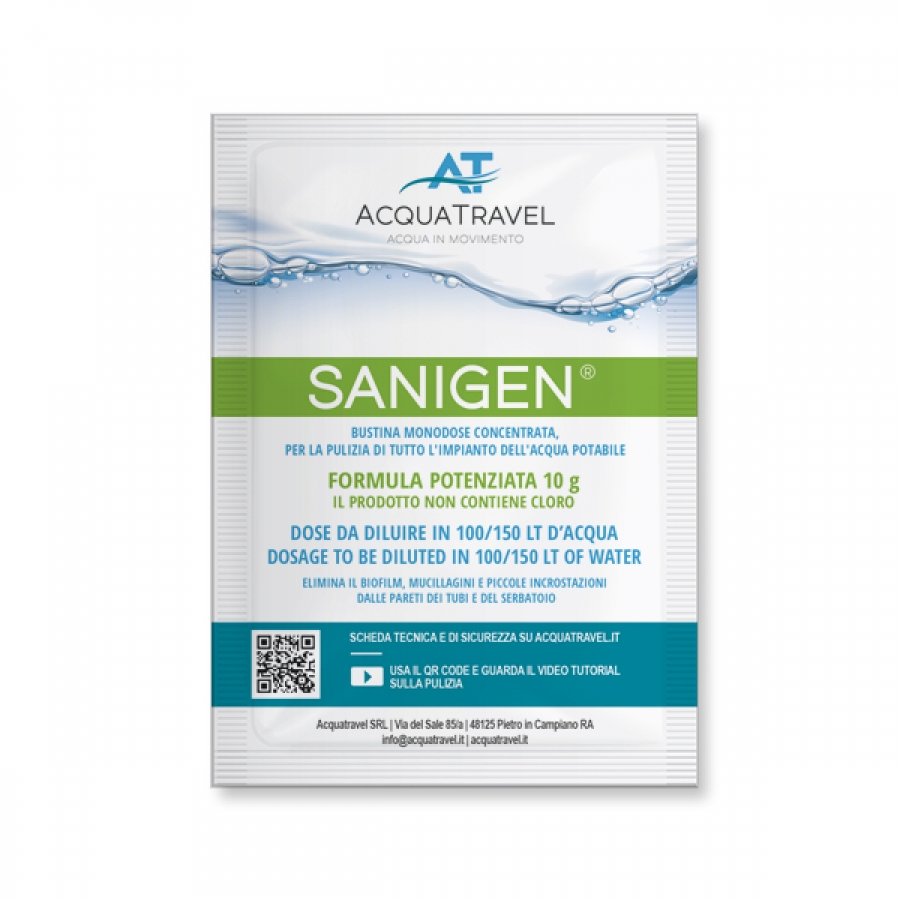 Usando una sola singola bustina monodose di “SANIGEN” all’anno o meglio, ogni sei mesi… eliminerete batteri, mucillaggini, biofilm e le piccole incrostazioni all’intero del sistema di distribuzione dell’acqua potabile.