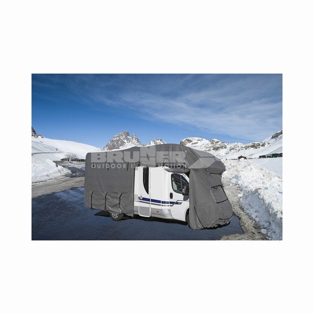 Copertura protettiva per camper. Versione più larga e più alta. Tessuto TNT traspirante. Resistente ai raggi UV, idrorepellente e lavabile. Protegge il camper da forti influssi atmosferici. Dà più vita al camper: verniciatura, guarnizioni di gomma, tappezzeria e finestre vengono protette. Grazie alla grande apertura laterale arrotolabile mediante due cerniere è possibile un accesso rapido all’interno. Le cinghie garantiscono la tenuta. Colore grigio. Viene fornita in una comoda sacca custodia.