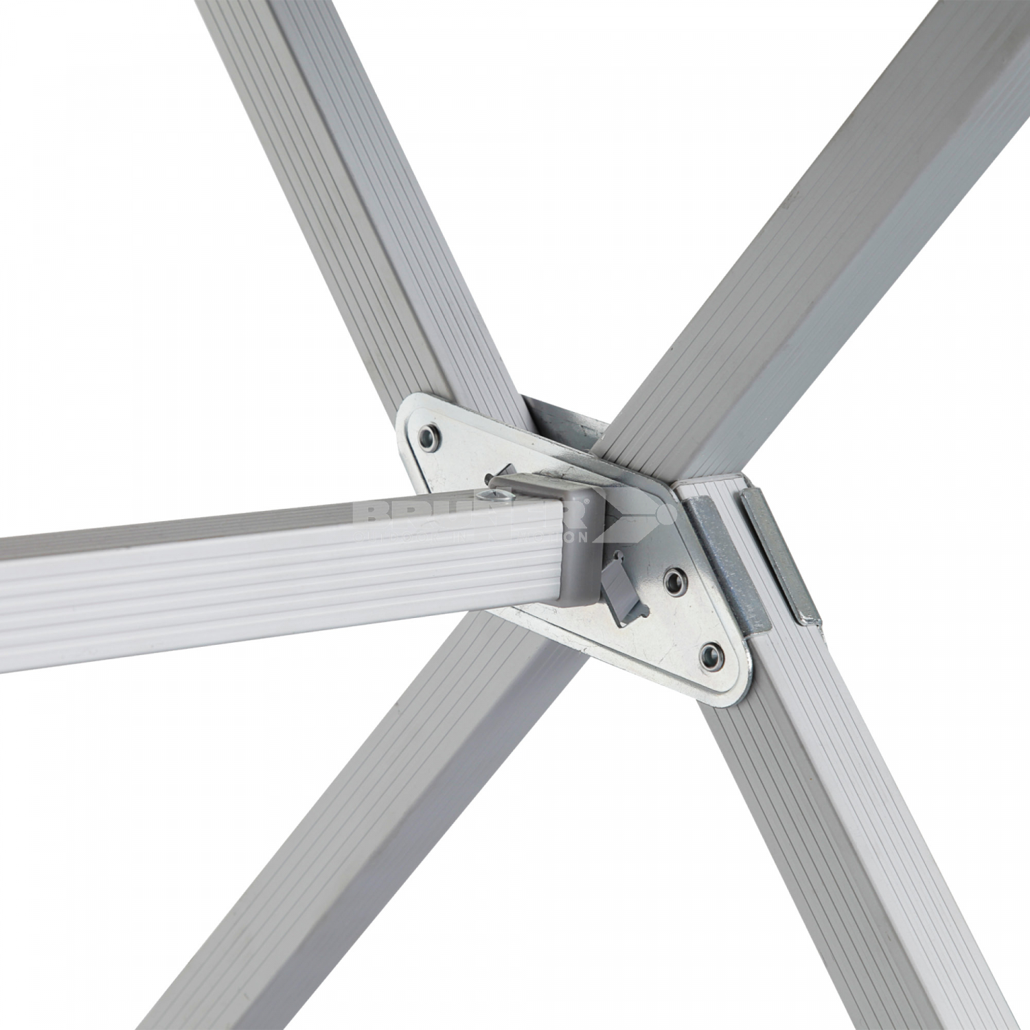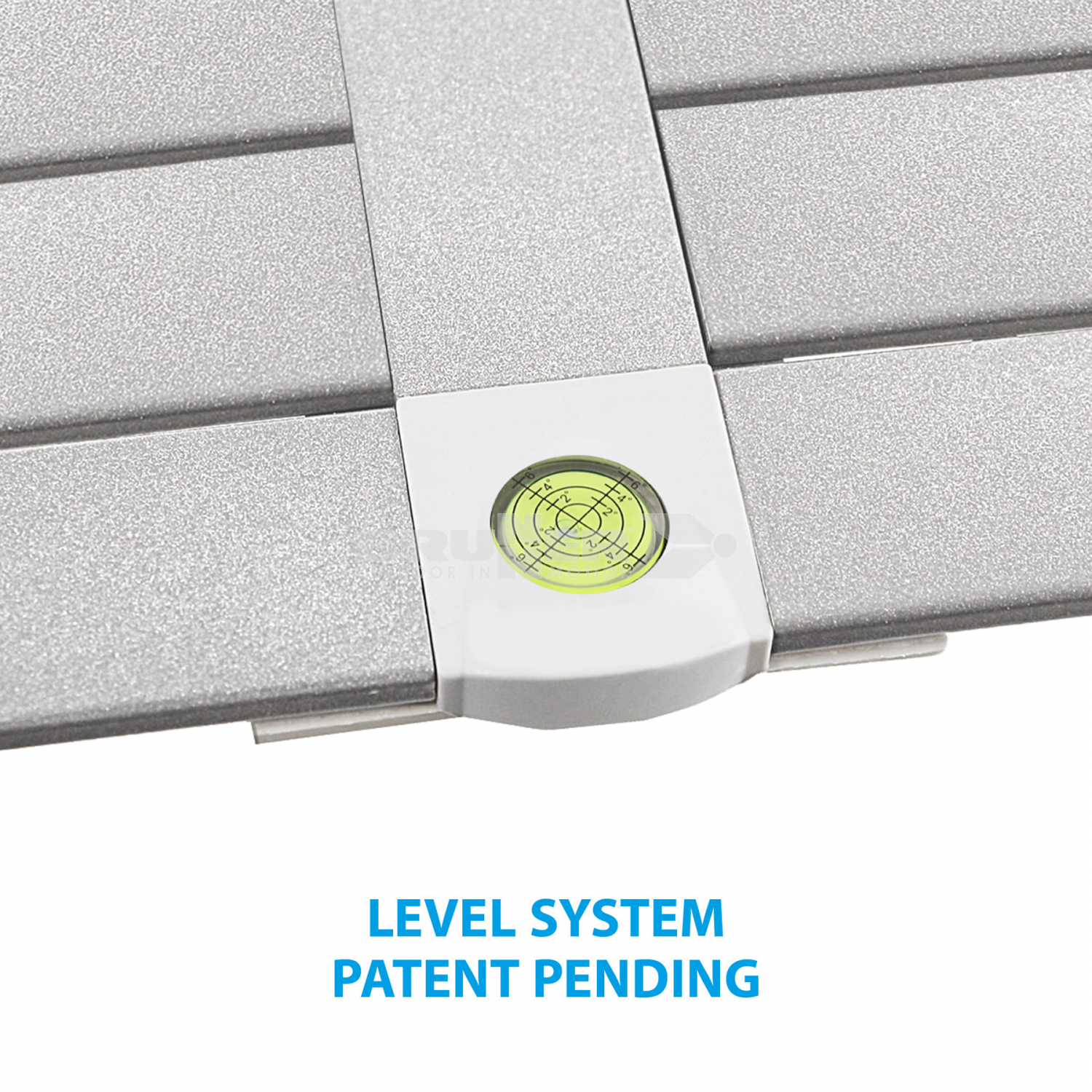 Tavolo pieghevole in alluminio con ripiano arrotolabile. Grazie alla speciale livella a bolla integrata, è possibile ottenere un posizionamento assolutamente orizzontale del ripiano su terreni irregolari (Level System). Struttura stabile con una gamba regolabile in altezza. È inclusa una borsa per il trasporto.