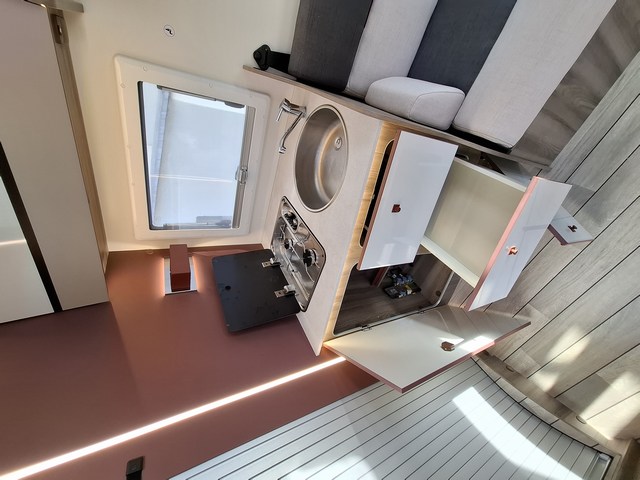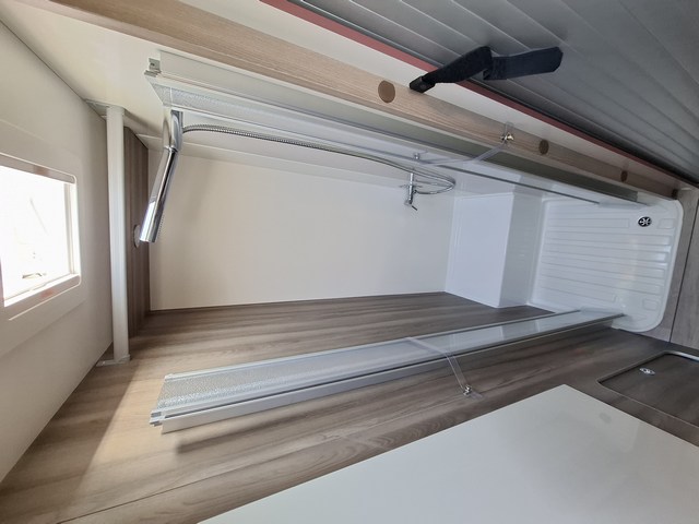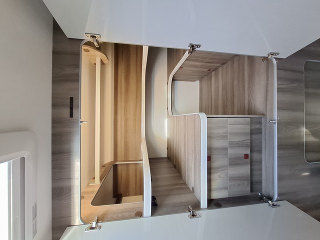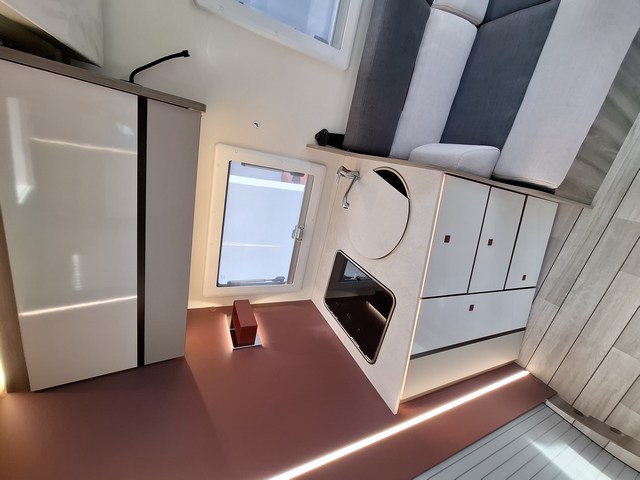 Pareti EXPS: Massima impermeabilità e isolamento acustico dell'abitacolo. Pareti interne e pavimento in materiale plastico impermeabile •Spessore pavimento: 54 mm •Spessore soffitto e pareti: 30 mm •Tetto esterno in fibra di vetro •Pareti interne/esterne in fibra di vetro •Piastrello inferiore del telaio rivestito in fibra di vetro