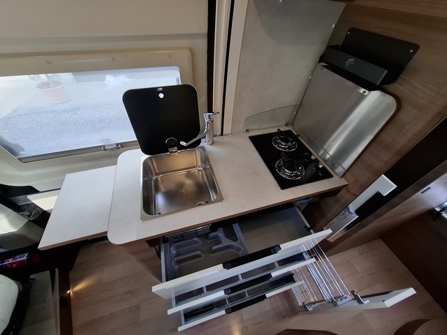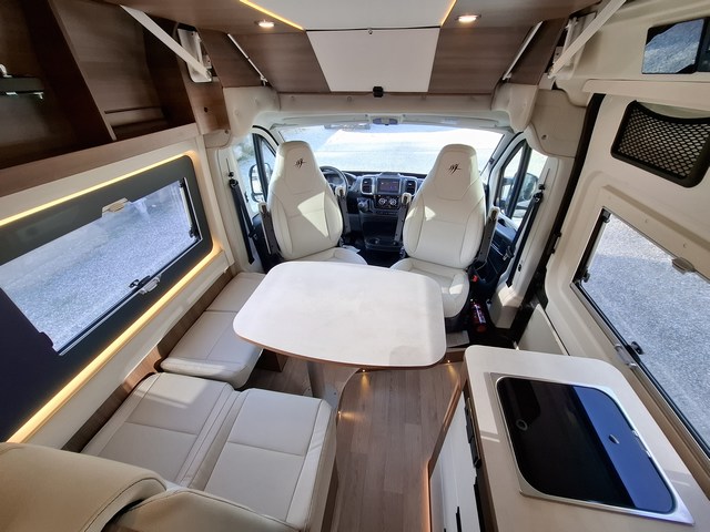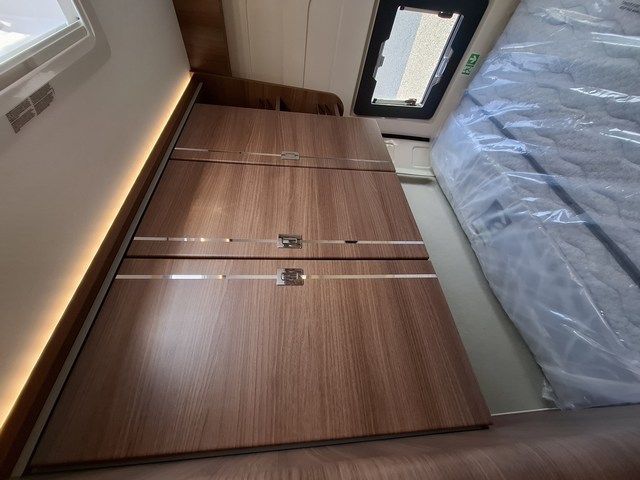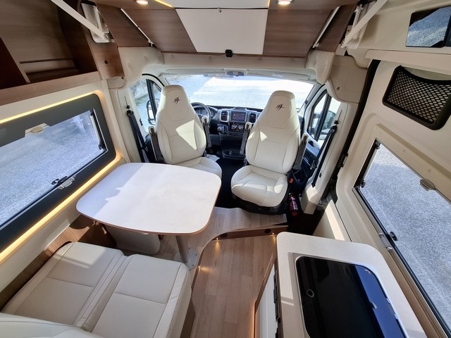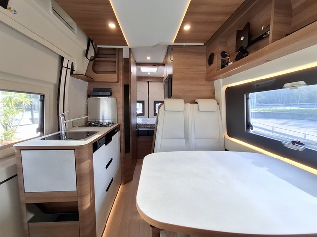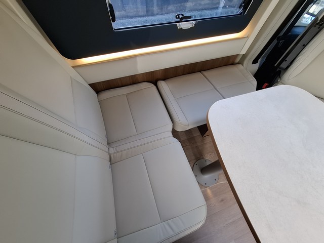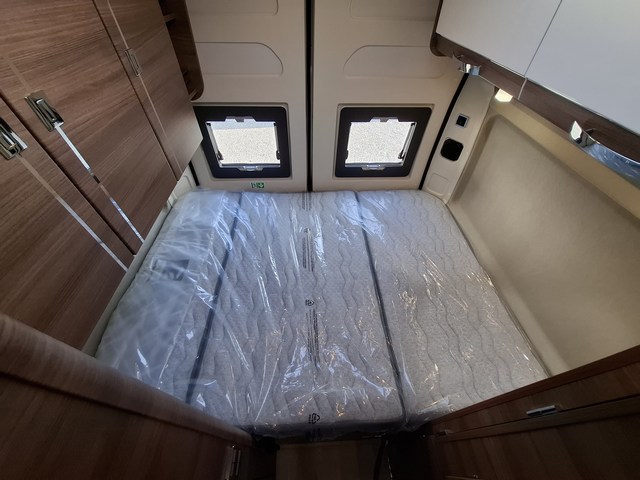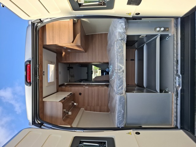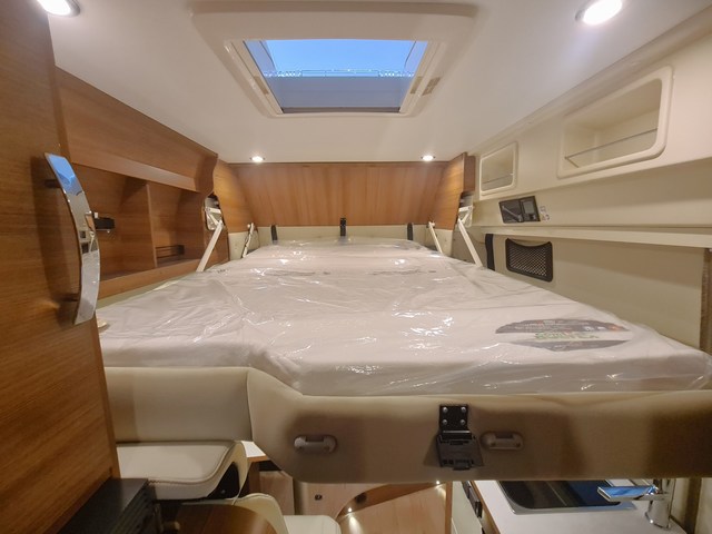 • Finestre laterali e posteriore a doppio vetro con cornice in poliuretano, oscurante e zanzariera integrati