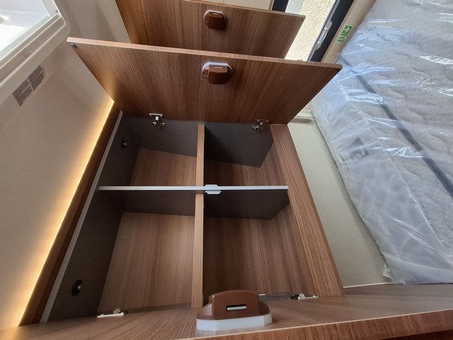 • Cassetti contenitori con portaposate/portapentole, con chiusura centralizzata elettrica e avviso all'avviamento del motore in caso di mancata chiusura